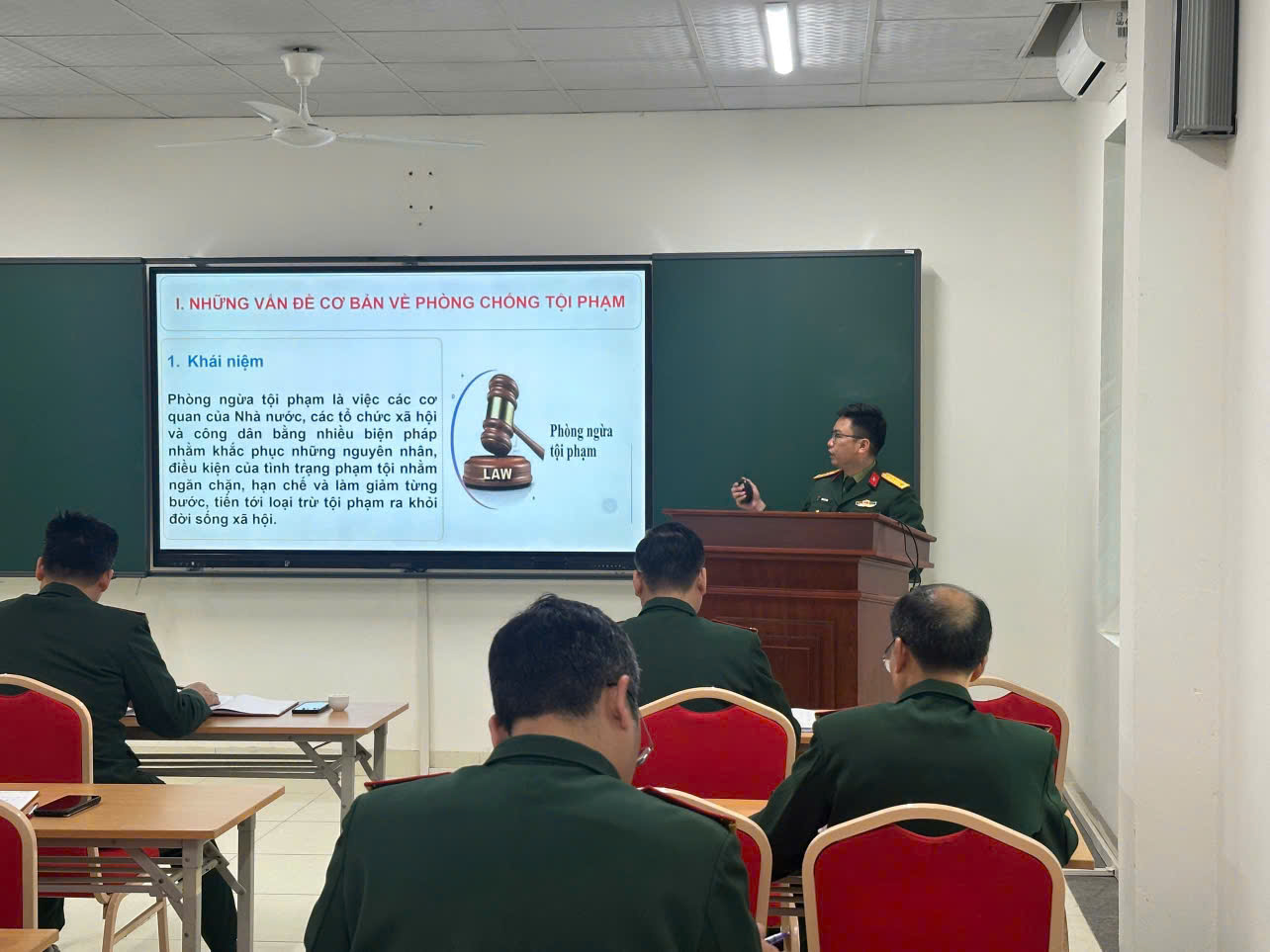 Đáng chú ý, nhiều bài giảng đã gắn chặt nội dung lý luận với thực tiễn công tác quân sự, quốc phòng ở cơ sở; liên hệ sát với nhiệm vụ của cán bộ quân sự địa phương trong tham mưu cho cấp ủy, chính quyền về quốc phòng – an ninh; xây dựng lực lượng dân quân tự vệ, dự bị động viên; phối hợp giữ vững an ninh chính trị, trật tự an toàn xã hội trên địa bàn. Qua đó, giúp học viên không chỉ nắm vững kiến thức lý luận mà còn hiểu rõ cách vận dụng vào thực tiễn công tác sau khi ra trường.