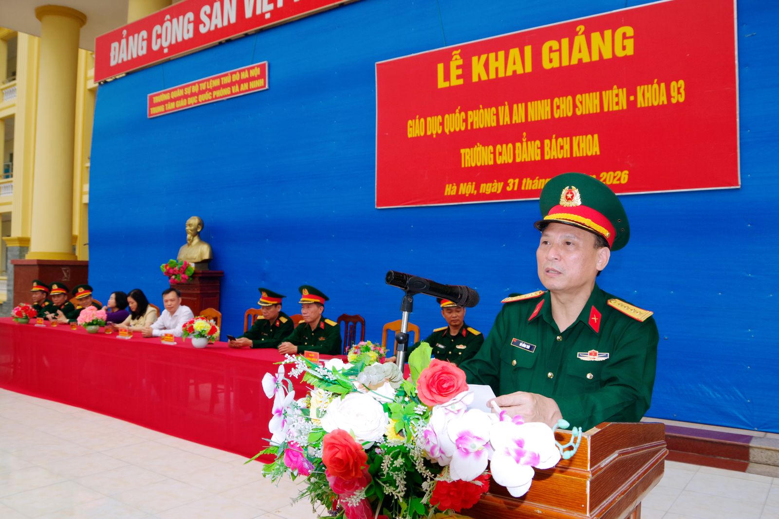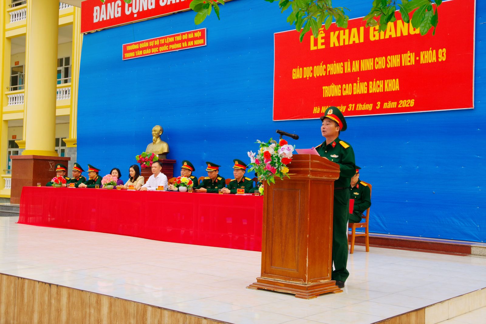 Phát biểu chỉ đạo tại buổi lễ, Đại tá Đỗ Hồng Thái - Hiệu trưởng, kiêm Giám đốc Trung tâm GD QP&AN Trường Quân sự BTL Thủ đô Hà Nội khẳng định: Đảng và Nhà nước ta luôn xác định giáo dục – đào tạo là quốc sách hàng đầu nhằm xây dựng nguồn nhân lực chất lượng cao, đáp ứng yêu cầu phát triển đất nước trong giai đoạn mới. Trong đó, giáo dục QP&AN là môn học đặc thù trong hệ thống giáo dục quốc dân, nhằm trang bị cho sinh viên thế giới quan, phương pháp luận về đường lối QP&AN của Đảng; đồng thời bồi dưỡng kiến thức về nền quốc phòng toàn dân, an ninh nhân dân gắn với rèn luyện kỹ năng quân sự cơ bản và nếp sống kỷ luật trong môi trường quân đội.