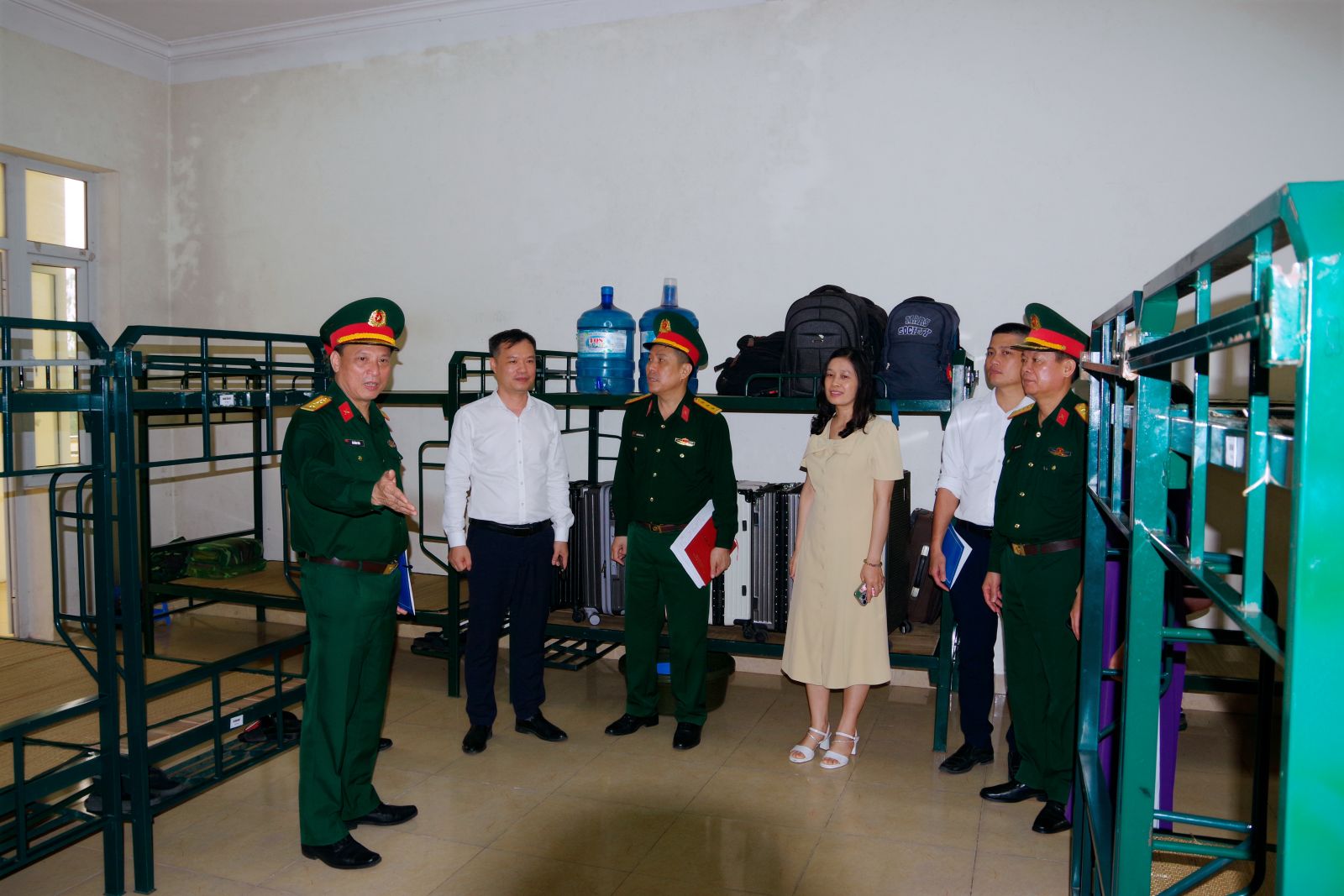 Ngay sau buổi lễ, Đại tá Đỗ Hồng Thái đã trực tiếp giới thiệu chi tiết về công tác bảo đảm cơ sở vật chất phục vụ khóa học. Lãnh đạo hai nhà trường tiến hành tham quan thực tế khu vực phòng ở, ghi nhận nền nếp nội vụ vệ sinh được duy trì gọn gàng, sạch sẽ, chăn màn sắp xếp vuông vức, đúng quy định.