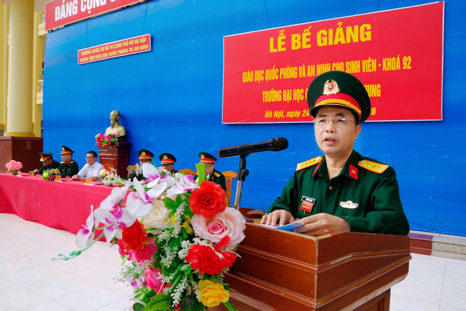 Phát biểu tại buổi lễ, Đại tá Nguyễn Lê Nam, Phó Hiệu trưởng Nhà trường ghi nhận, biểu dương tinh thần trách nhiệm của đội ngũ cán bộ, giáo viên và sự nỗ lực, cố gắng của toàn thể sinh viên trong suốt khóa học. Đồng chí nhấn mạnh, trong bối cảnh tình hình thế giới và khu vực còn tiềm ẩn nhiều yếu tố phức tạp, các thách thức an ninh, nhất là trên không gian mạng, đang tác động trực tiếp đến nhận thức của giới trẻ; do đó, việc trang bị kiến thức quốc phòng và an ninh cho sinh viên có ý nghĩa thiết thực, không chỉ nâng cao kỹ năng mà còn góp phần bồi dưỡng bản lĩnh chính trị, ý thức trách nhiệm đối với Tổ quốc.
