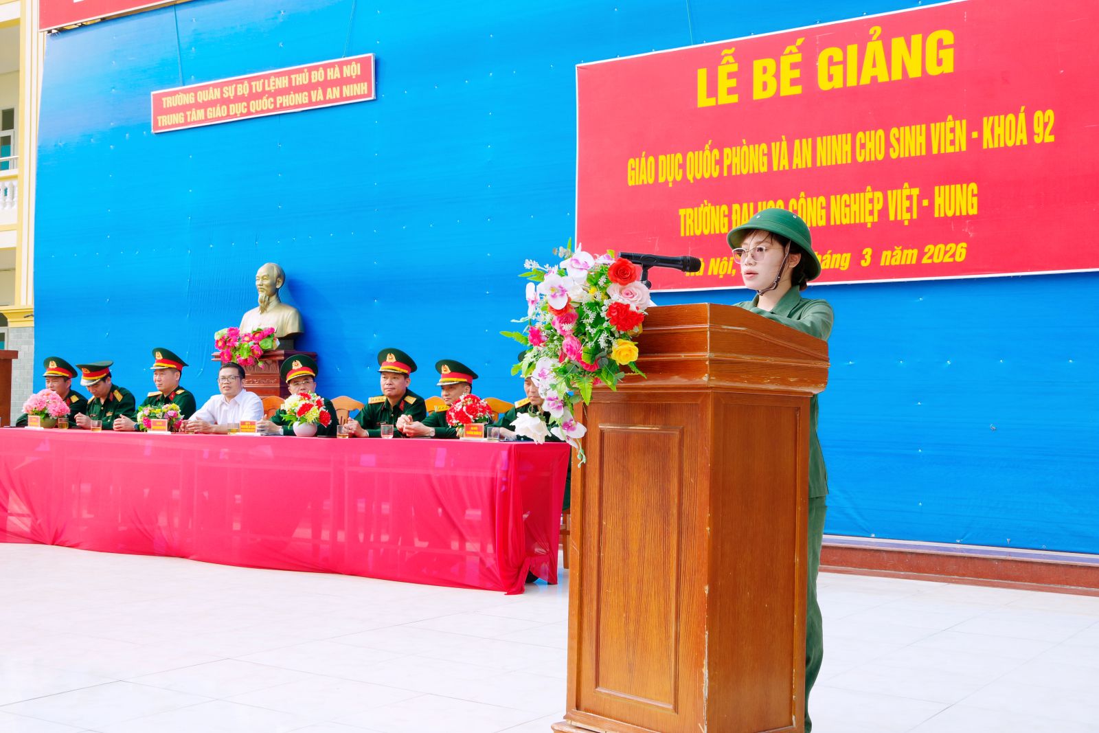 * Đại diện sinh viên khóa học, em Nguyễn Thị Thanh Hạ (Đại đội 7) chia sẻ: 21 ngày học tập và rèn luyện tại Trung tâm là khoảng thời gian có nhiều ý nghĩa, giúp sinh viên từng bước thích nghi với môi trường quân đội, hình thành nếp sống chính quy, khoa học. Từ những bỡ ngỡ ban đầu, sinh viên đã dần trưởng thành hơn về nhận thức và hành động, nhất là trong chấp hành kỷ luật và xây dựng tinh thần đoàn kết tập thể.