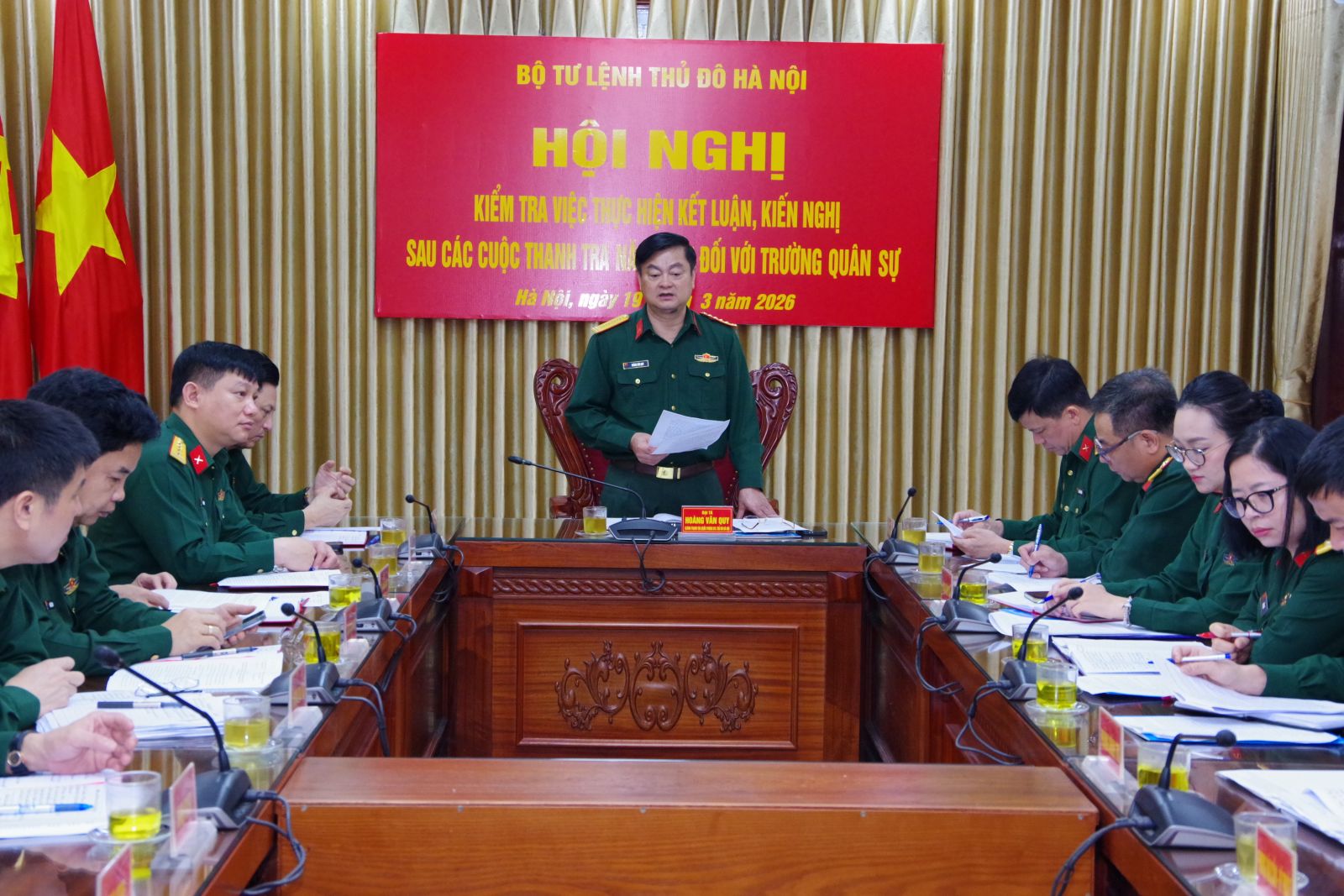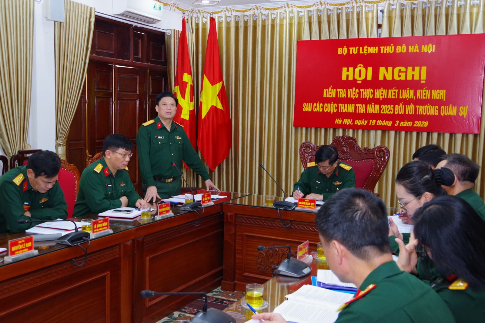 Tại buổi làm việc, Đảng ủy, Ban Giám hiệu Nhà trường đã báo cáo chi tiết về công tác lãnh đạo, chỉ đạo thực hiện kết luận thanh tra số 3697/KL-ĐTT ngày 29/8/2025 của Bộ Tư lệnh Thủ đô Hà Nội. Ngay sau khi có kết luận thanh tra, Nhà trường đã tổ chức quán triệt nghiêm túc cho toàn thể cán bộ, đảng viên, đồng thời tổ chức các hội nghị kiểm điểm, làm rõ trách nhiệm của từng cá nhân, cơ quan, đơn vị đối với những khuyết điểm đã được chỉ ra.