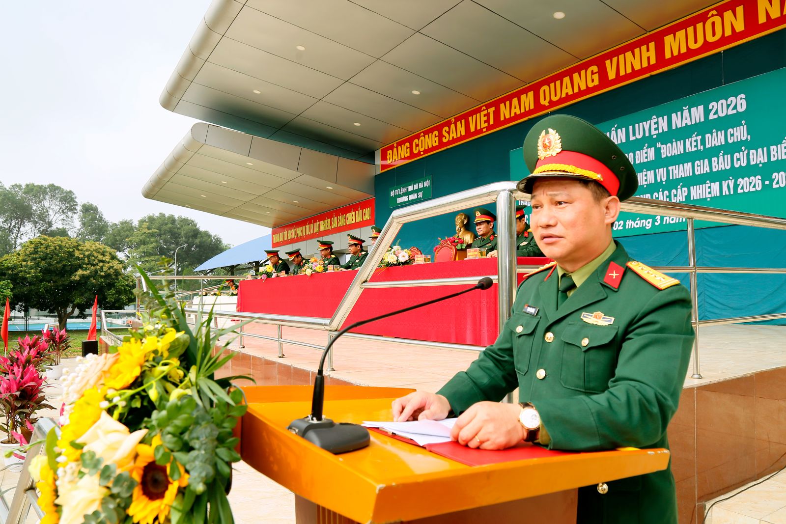 Tại buổi lễ, Đại tá Đỗ Hồng Thái – Hiệu trưởng Nhà trường đã quán triệt Chỉ lệnh công tác quân sự, quốc phòng năm 2026 của Tổng Tham mưu trưởng Quân đội nhân dân Việt Nam; Mệnh lệnh huấn luyện chiến đấu năm 2026 của Tư lệnh Bộ Tư lệnh Thủ đô Hà Nội; triển khai đồng bộ kế hoạch huấn luyện, giáo dục – đào tạo, công tác Đảng, công tác chính trị năm 2026.