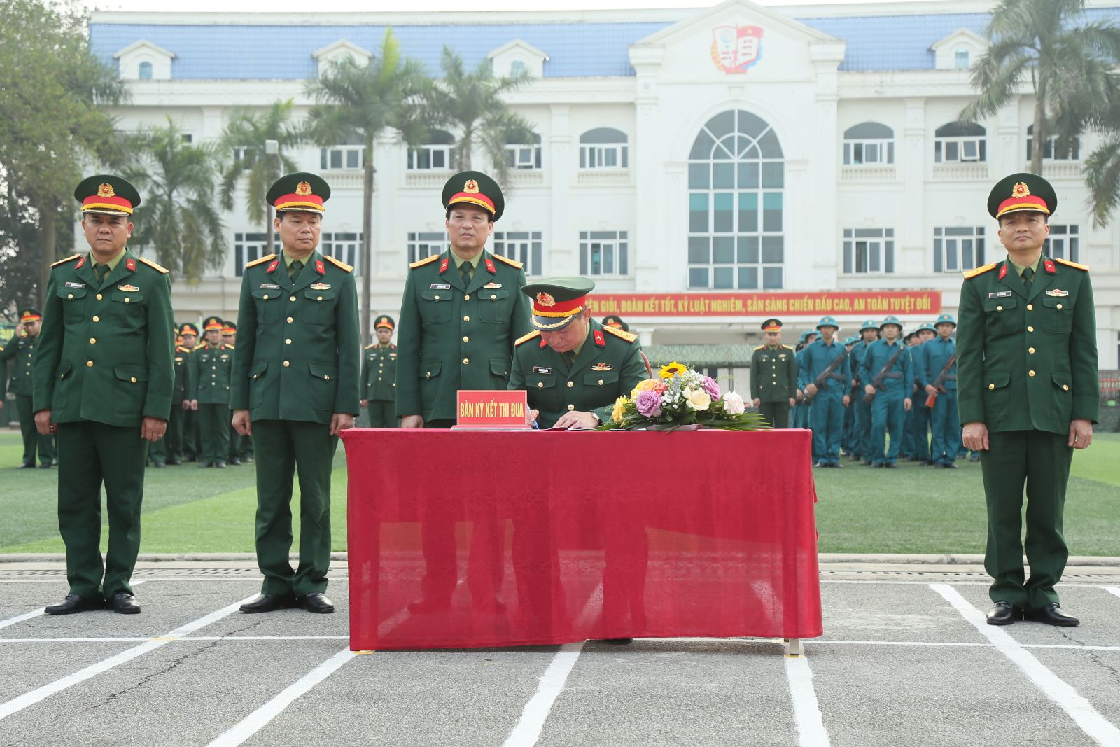 Các cơ quan, khoa giáo viên, đơn vị ký kết giao ước thi đua với những chỉ tiêu cụ thể: hoàn thành 100% chương trình huấn luyện; 100% bài giảng đạt yêu cầu, phấn đấu trên 85% khá, giỏi; kiểm tra các nội dung 100% đạt yêu cầu, trên 80% khá, giỏi; bảo đảm an toàn tuyệt đối trong huấn luyện và các hoạt động. Đồng thời, đẩy mạnh Phong trào “Dân vận khéo”, xây dựng “Đơn vị dân vận tốt” giai đoạn 2026–2030; duy trì nghiêm chế độ trực sẵn sàng chiến đấu; phối hợp nắm chắc tình hình địa bàn, tổ chức bầu cử đúng luật, an toàn, tiết kiệm.