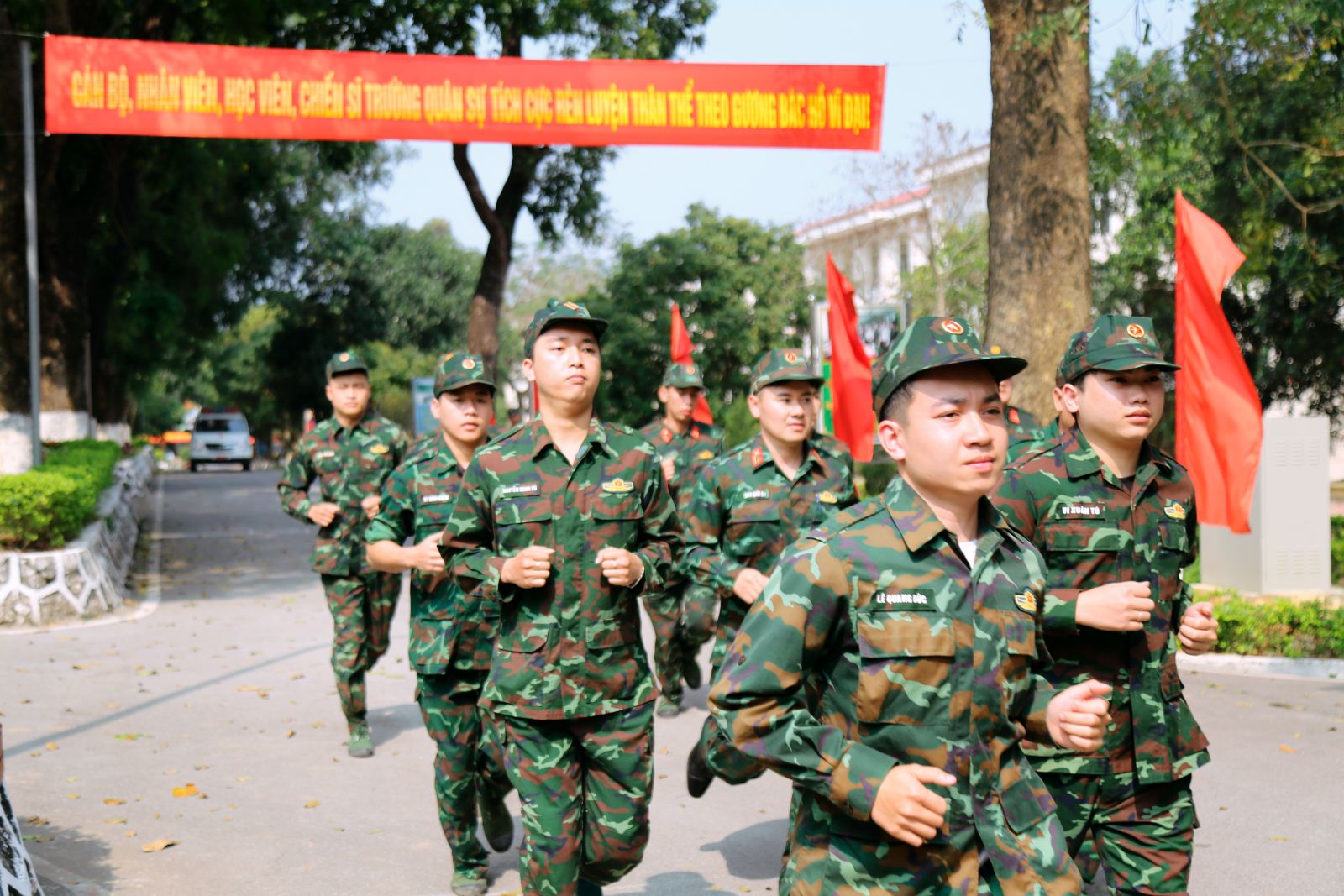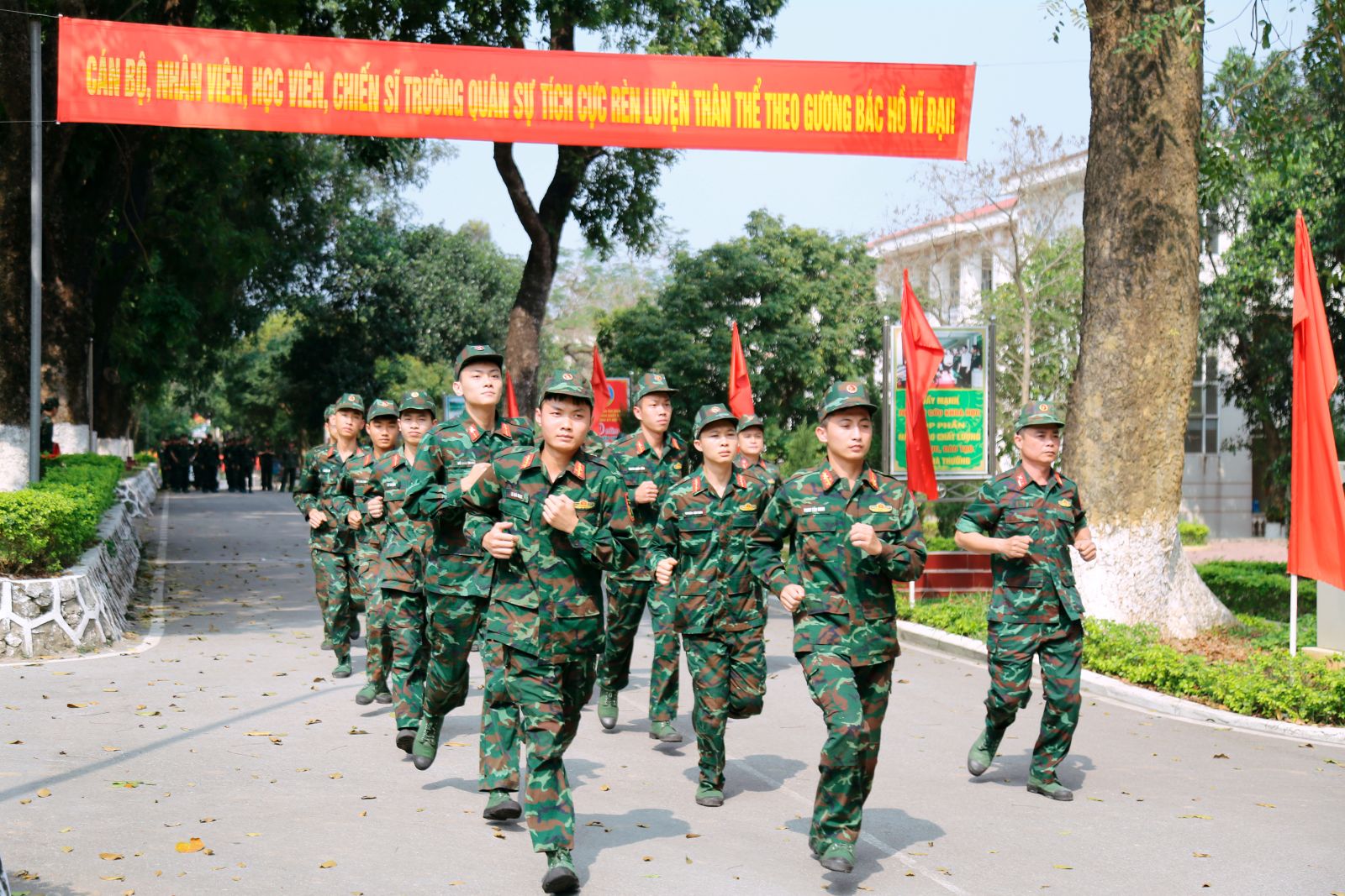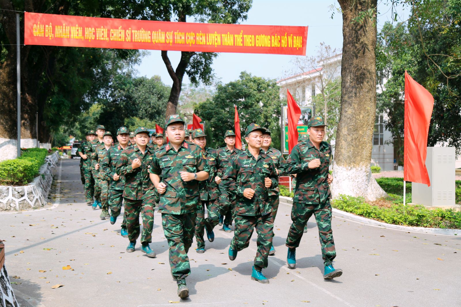 * Chiều cùng ngày, Nhà trường tổ chức Ngày chạy thể thao CISM kết hợp chạy Olympic năm 2026. Đây là hoạt động thường niên hưởng ứng phong trào của Hội đồng Thể thao quân sự thế giới, đồng thời là nội dung rèn luyện thể lực truyền thống của Nhà trường trong những ngày đầu ra quân huấn luyện. Với khẩu hiệu “Rèn luyện thân thể theo gương Bác Hồ vĩ đại”, 100% cán bộ, giáo viên, nhân viên, học viên, chiến sĩ tham gia chạy trong khuôn viên đơn vị, bảo đảm tổ chức chặt chẽ, an toàn tuyệt đối. Hoạt động góp phần cổ vũ tinh thần hăng say rèn luyện thể lực, nâng cao sức bền, ý chí và tính kỷ luật, tạo khí thế thi đua sôi nổi, sẵn sàng bước vào mùa huấn luyện mới đạt kết quả cao, đáp ứng yêu cầu nhiệm vụ trong tình hình mới./