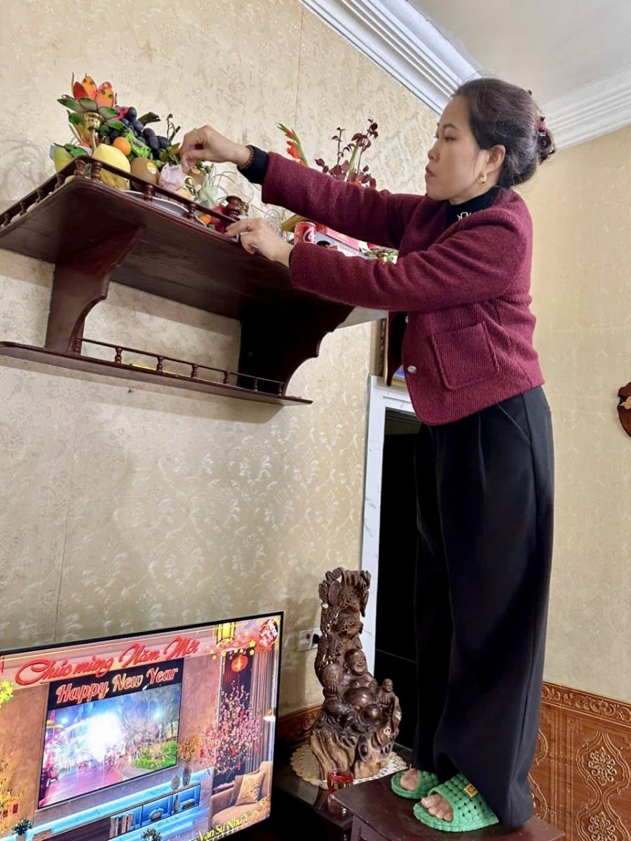 Những ngày giáp Tết, chị quán xuyến việc gia đình, chăm lo hương khói tổ tiên như bao người vợ lính. Mâm cơm tất niên thiếu vắng hai cha con khiến chị chạnh lòng, nhưng trên hết là niềm tự hào. “Gia đình có thể thiệt thòi một chút về sum họp, nhưng đổi lại là niềm vinh dự khi chồng và con đang làm nhiệm vụ. Tôi chỉ mong hai bố con mạnh khỏe, hoàn thành tốt nhiệm vụ. Ở nhà, tôi sẽ lo chu toàn mọi việc”.