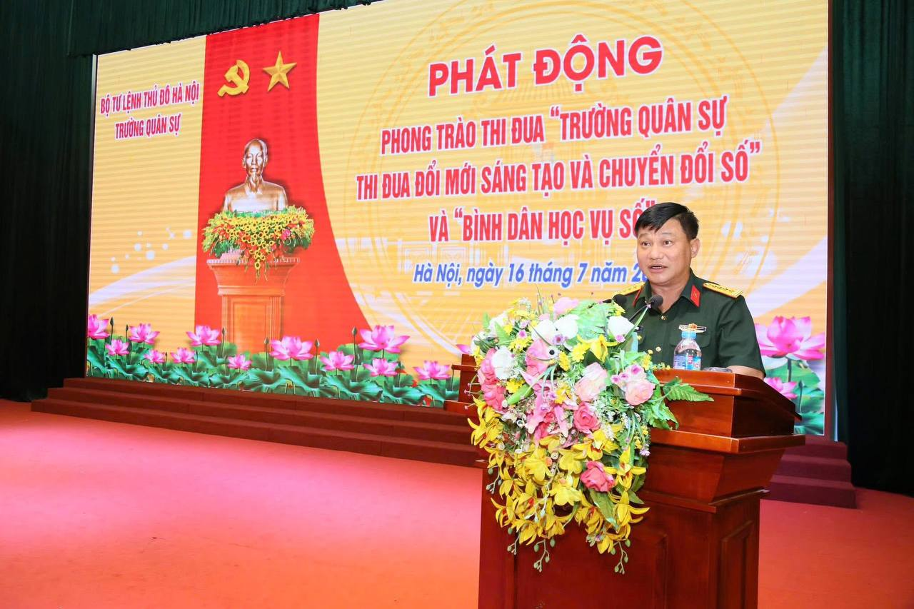 Phát biểu tại buổi lễ, Đại tá Trịnh Đình Đông nhấn mạnh: Phong trào thi đua nhằm triển khai hiệu quả các chủ trương lớn của Đảng, Nhà nước, Quân ủy Trung ương, Bộ Quốc phòng về đổi mới, sáng tạo, chuyển đổi số cho toàn quân, toàn dân đáp ứng yêu cầu nhiệm vụ xây dựng và bảo vệ Tổ quốc trong tình hình mới; đồng thời cụ thể hóa Nghị quyết số 57-NQ/TW ngày 22/12/2024 của Bộ Chính trị về đột phá phát triển khoa học, công nghệ, đổi mới sáng tạo và chuyển đổi số trong thời kỳ mới.